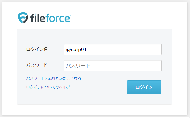 ご利用の環境によってはシングルサインオン設定が組まれている場合があります。その際はログイン名に @[サイト名] (例:@corp01)を入力してください。